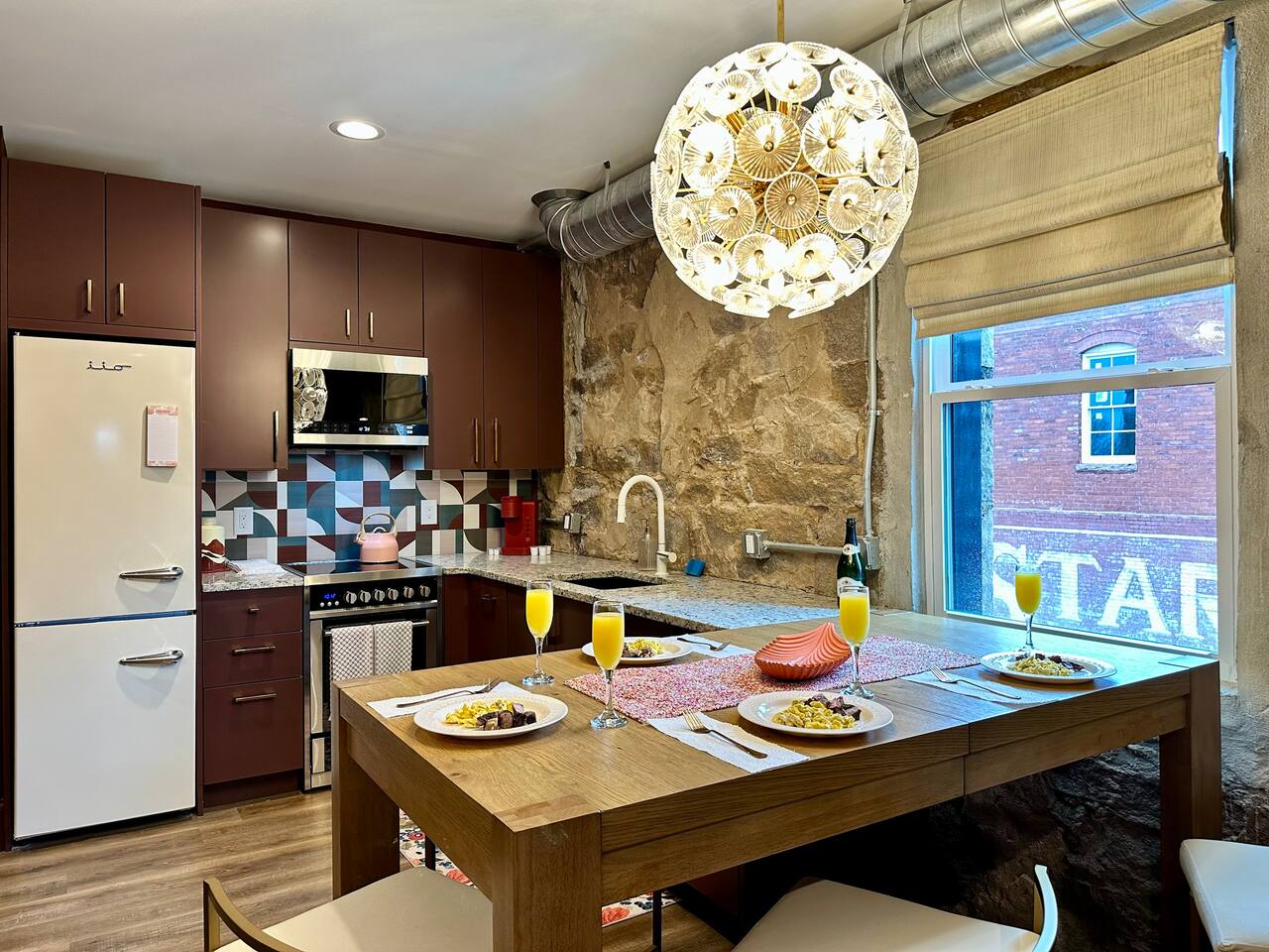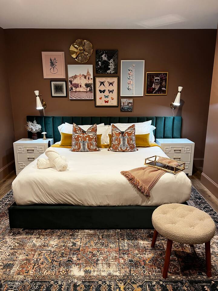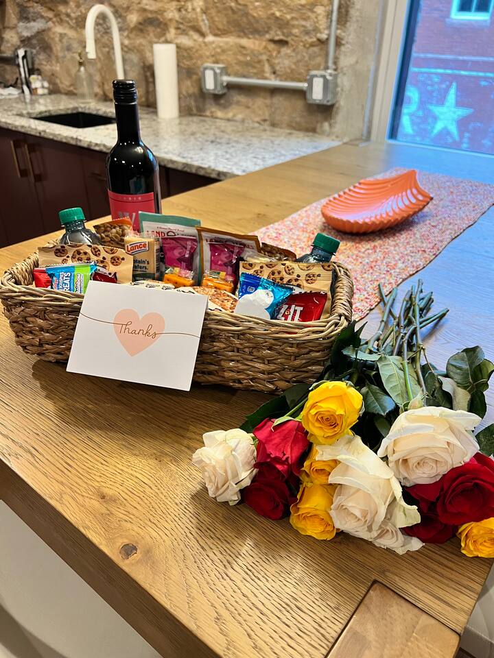 Welcome to the Dawn Suite at Granite House Lofts! A luxurious retreat in the heart of Downtown Stone Mountain! Follow us @granitehouselofts ! *Ask us about our special add on services like bike rentals, in room dining or massages, or special show/event tickets!* Immerse yourself in the tranquility of the Dawn Suite, an elegant retreat nestled within a historic granite building turned boutique Airbnb. Granite House Lofts offers two themed suites: Dawn and Dusk. Inspired by the enchanting dawn hours, the Dawn Suite exudes a lighter, more casual vibe, designed to captivate travelers seeking a blend of refined relaxation and lively daytime activity. The suite's aesthetic reflects the freshness and optimism of morning light, making it ideal for business travelers, those in search of serene relaxation, and guests eager to immerse themselves in daytime adventures. Key Features of Your Stay **Gracious Entryway** - Effortless check-in with detailed, step-by-step instructions - Majestic 100-year-old wood and granite entry - Custom Granite House Lofts signage and illuminated pathways - Reserved off-street parking - Smart locks for easy and secure access - Bespoke guidebook featuring local gems - Modern sidewalk landscaping with elegant lighting, enhancing your evening strolls Dawn Suite Highlights **Elegant Bedroom Overlooking the Historic Star Biscuit Mural** - French doors opening into the serene bedroom - Plush king-sized memory foam mattress with a custom headboard - 45" Smart TV with streaming capabilities - Cozy seating area adjacent to the walk-in closet **Luxurious Full Bathroom** - Walk-in shower with exquisite custom tiling - High-pressure shower head for a revitalizing experience - Comprehensive amenities including a hairdryer, travel size shampoo, conditioner, body wash, and hand soap, and other toiletries **Open-Concept Entertainment Space** - Spacious 55" Smart TV with streaming services - Selection of board and card games - Bluetooth mini-record player speaker for your enjoyment - Seamlessly integrated living, dining, and kitchen areas - State-of-the-art appliances: electric stove, dishwasher, refrigerator, freezer, kettle, microwave, and Keurig single K-cup coffee maker - Fully equipped kitchen with cooking and dining essentials - Peninsula dining area with seating for four - Convenient in-unit washer and dryer **Sophisticated Aesthetic** - Custom-designed suites blending 1920s historical charm with contemporary comforts - Recent renovation featuring chic finishes - Exposed brick and granite walls for an authentic touch **Prime Location** - Situated in the core of historic downtown Stone Mountain Village - Steps away from dining, shopping, and Stone Mountain Park - Just 16 miles from downtown Atlanta, GA - 27 miles from Hartsfield-Jackson Atlanta International Airport - Guidebook with curated local recommendations - Eclectic mix of upscale and casual dining, and a vibrant nightlife scene including coffee shops, restaurants, breweries, wine bar, piano/cigar bar, CBD bar, and more - Opportunities for historical tours, movie site visits, nature walks, and adventures in Stone Mountain Park **Exclusive Perks:** - Ideal for Friday Night "Tunes by the Tracks" free outdoor concert series that happens right across the street (every Friday May-June and again September-October) with reserved seating for free upon request . Don't forget to ask us about our special add on services like bike rentals, in room dining or massages, or special show/event tickets! Guests of the Dawn Suite have access to one designated off-street parking space. **Important Information:** - Ensure all guests are included in your reservation. Unauthorized guests incur a $100 per guest, per night charge and immediate eviction. - Futons prioritize convenience; for utmost comfort, the king bed is recommended. Review sleeping arrangements to ensure comfort for all guests. - Train tracks nearby may cause occasional sounds and vibrations. For larger groups and anyone needing TWO full bedrooms, please consider booking both suites at Granite House Lofts and enjoy a 10% discount using this link https://www.airbnb.com/slink/tPNzwBM5 Follow Us! @granitehouselofts Indulge in the epitome of luxury and historical allure at the Dawn Suite in Granite House Lofts. Experience the invigorating spirit of dawn in a setting that balances modern sophistication with timeless charm.