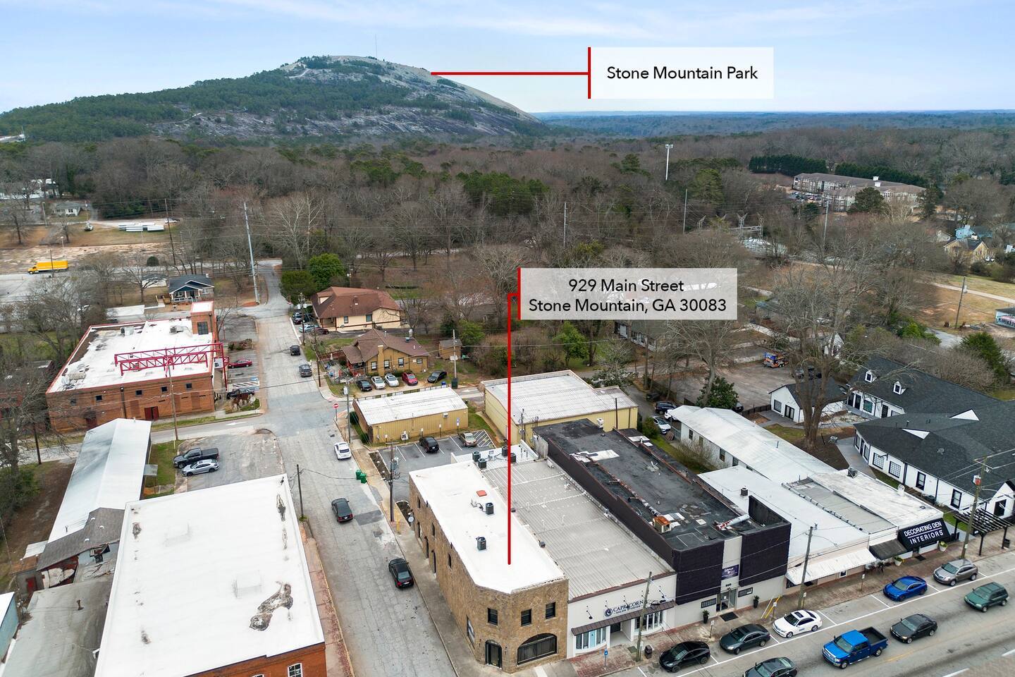 The City of Stone Mountain's downtown, known as "Stone Mountain Village," is situated about 16 miles from Atlanta, GA. An exurban community, it highlights natural beauty, small-city charm, and a true spirit of hospitality. Peruse downtown, with it's welcoming restaurants, laid-back nightlife, and rich history, all within walking distance. Buildings dating back to 1793 fill the park's Historic Square, with walking and biking paths into Stone Mountain Park. The Park is home to 3200 acres of outdoor activities and attractions, including hiking trails, a mountain summit path, and Stone Mountain Lake.