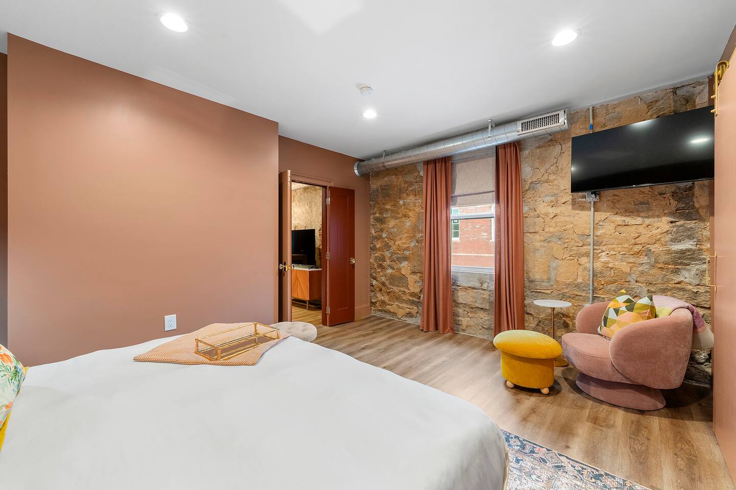 Step into Suite Dawn at Granite House Lofts, a sophisticated boutique-style loft nestled within a majestic granite building from 1929. Located on Main Street in the heart of Stone Mountain's vibrant downtown business district, this exquisite loft offers unparalleled proximity to Stone Mountain Park, GA's premier tourist destination—and a delightful array of local attractions including bars, restaurants, pubs, wine bars, breweries, retail shops, bike shops, coffee houses, museums, and theaters.